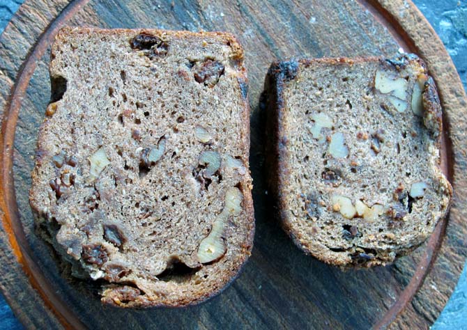 Two chunks of my first trial loaf have been sitting on a shelf in the kitchen in a polythene bag since it was baked about six weeks ago. During that time it has endured extremes of temperature during baking days and freezing nights. I thought it was time to see how it was getting on today: