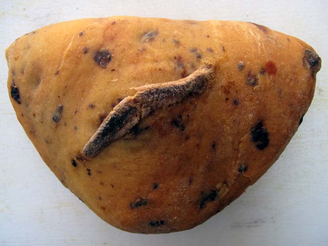 It’s a very soft dough full of chopped black olives with a big dollop of tomato sauce and anchovy inside. They don’t last long.