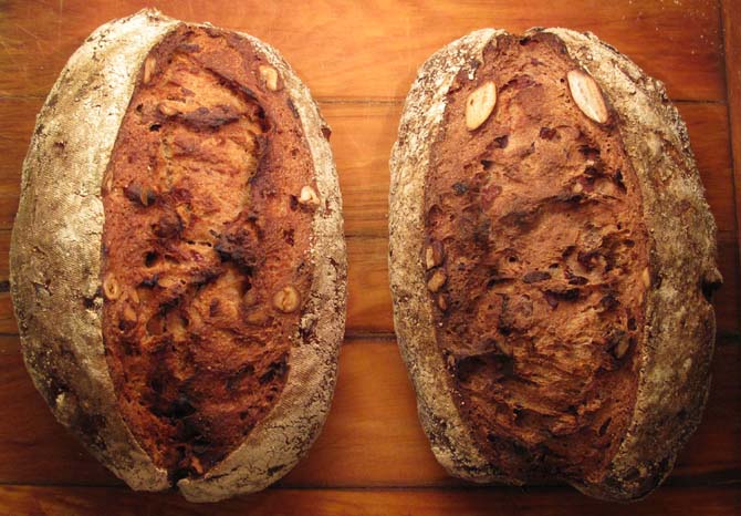 The secret ingredient? Bourbon. Soak your cranberries in a good shot of whiskey for an hour then complete the soaker with orange juice. Rye starter, flour mix of white, wholemeal wheat and rye, plenty of pecans. Sam’s your uncle.