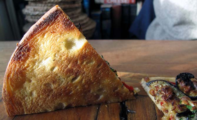 Last time the pizza was baked on a baking sheet dusted with semolina; this time in an oiled pizza tin. I preferred the first one – this one tasted fried – but great.