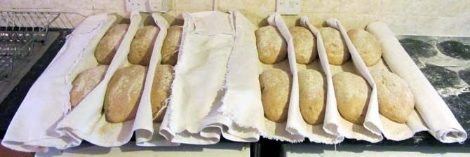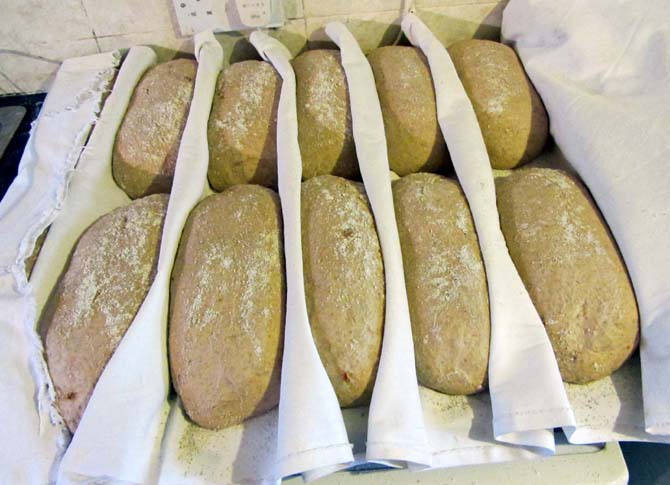 6.50 a.m. ten large tomato breads with sundried tomato in the couche. 7.50 a.m. twenty in the couche: