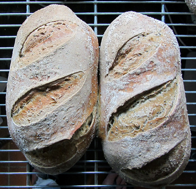 Posted on July 4, 2012 by bethesdabakers The overnight cascading dough became 26 large Potato, Rosemary & Black Onion Seed loaves (Dan Lepard if I remember correctly) of which these are two: Share this: Click to share on Facebook (Opens in new window) Facebook Like Loading... Related