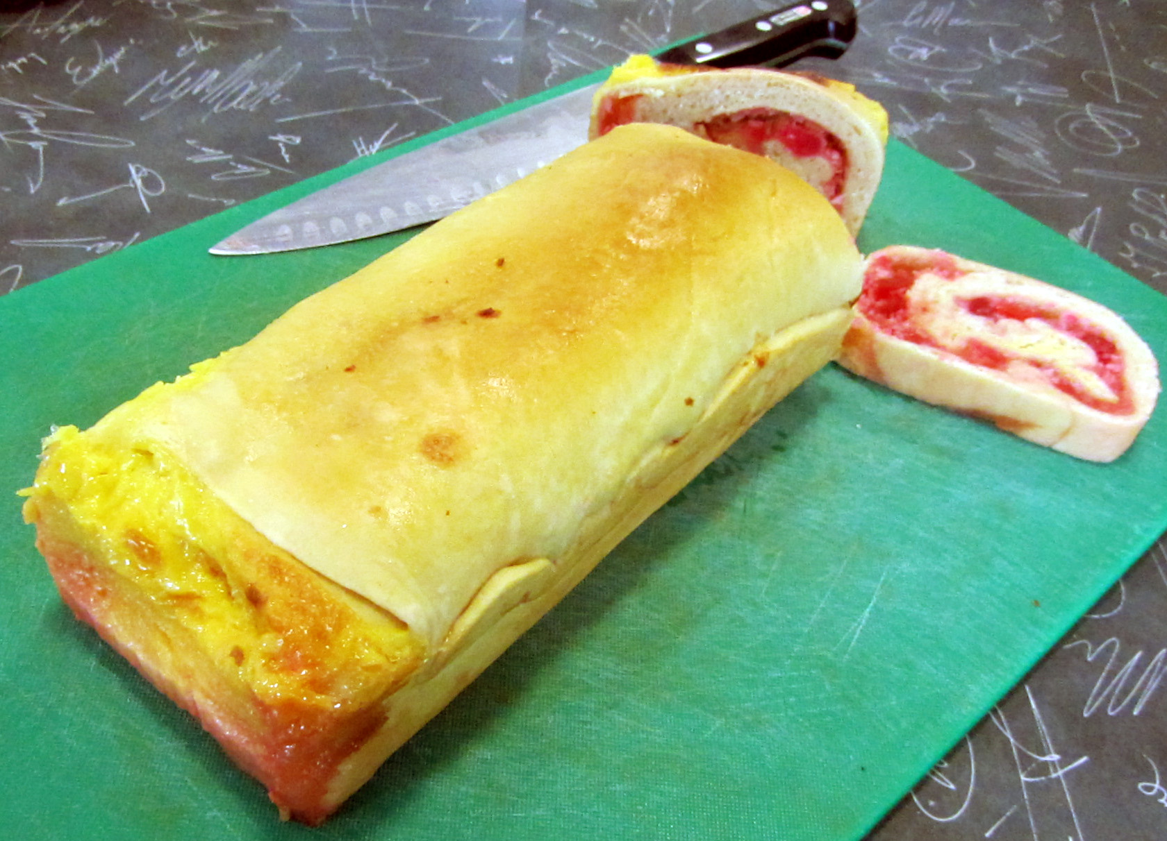 A bread containing custard, glace cherries and coconut. Jay told me he was still eating it this morning. Shows what exhaustion can do to you.