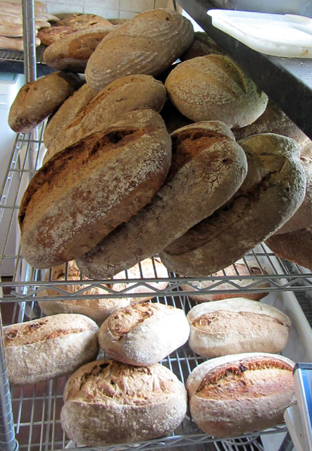 So, for instance, with Chris, the first student under the new regime: On day 1 I had a box of fermented dough ready mixed to practice scaling, shaping, slashing, baking. We started with the prepping for the evening’s commercial mix – mixed the starters, prepared the soakers, made a tomato sauce for the week’s bread (tomato bread with sundried tomatoes), then we looked in detail at my systems for storing recipes, calculating ingredient weights, producing a work schedule, etc. and related this back to Chris’s plans. Spent some time with the prepared dough making boules, batards, baguettes – getting the doughs in baskets. Had a good lunch. Got the doughs in the oven and baked – by then it was time for the evening mix and by about 6.30 p.m. the doughs were in the fridge for overnight fermentation and the kitchen cleaned.