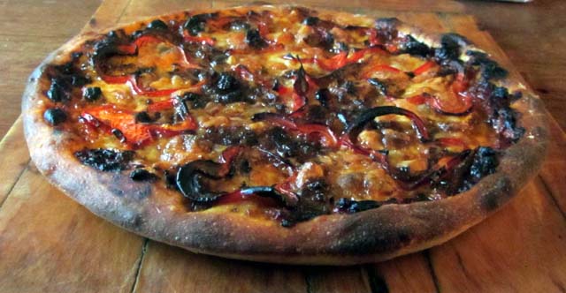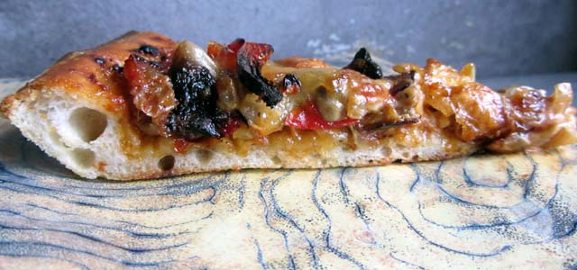 We are always being told that the essence of good pizza is restraint – a smear of tomato sauce, a scattering of basil leaves, a few pieces of mozzarella. That’s one way of doing it. But with a different approach you can turn out a fabulous deeper concoction.