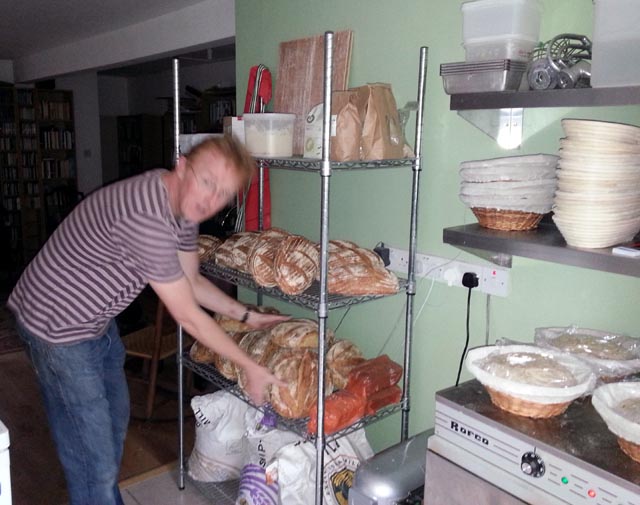 He’s a talented man: journalist, editor, poetry critic – there aren’t that many bakers whose poetry review you can read in the Guardian on the way down to visit him – plus he doubles as a printer using a small hand press, his response to a world being taken over by Google, Linkedin and bread ambassadors. And we have so much in common, like a love of Westons Old Rosie. In fact this is how he looked to me by the end of the party: