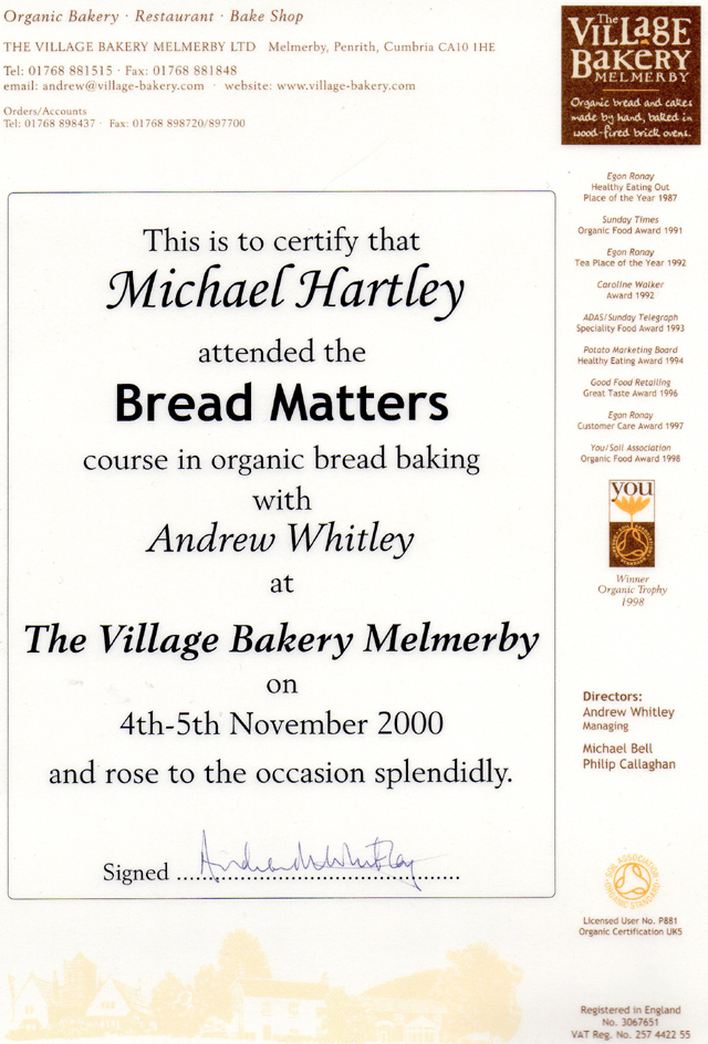 Further more, on November 5th 2000 I obtained my rye starter from Andrew Whitley on a two day course at Melmerby – first bread course I ever did.