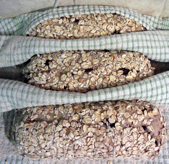 Torth Nadolig is a very, very traditional Welsh Christmas bread that I invented last year – wheat, oats, rye, hazelnuts, currants soaked in mead and orange juice plus honey. Gave it a little run through last week: