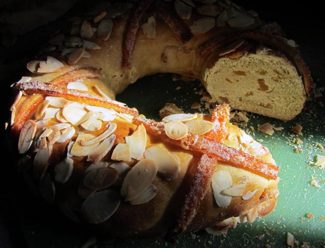 Joe declared his orange ring not as good as it looked. He was trying to recreate a Spanish recipe from memory with some leftover sponge. Work in progress.