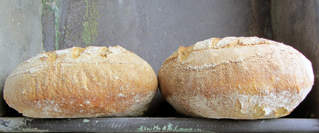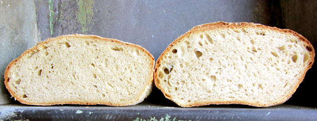 Two identical white sourdoughs at 65% hydration: