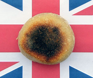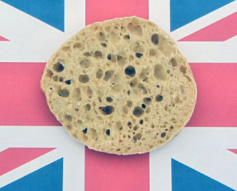 I used my most basic white sourdough formula – Strong White Flour 100%, Water 59%, Starter 26.4%, Salt 1.5%. Fermented at room temperature for four hours, folded every hour. Then, pressed out the dough into a rectangle about ¾ inch thick, cut 3 inch rounds with a floured glass. Proved the rounds on a baking sheet liberally dusted with corn meal for two hours. Heated a baking stone on a low gas for five minutes. Dusted the baking stone with corn meal, cooked the rounds for 10 minutes either side. Easy or what?