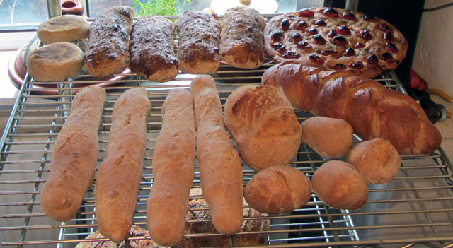 Clockwise: Baguettes, English Muffins, Turkish Pide, Cherry Tomato Focaccia, a Plait, Rolls and a small Campagne.