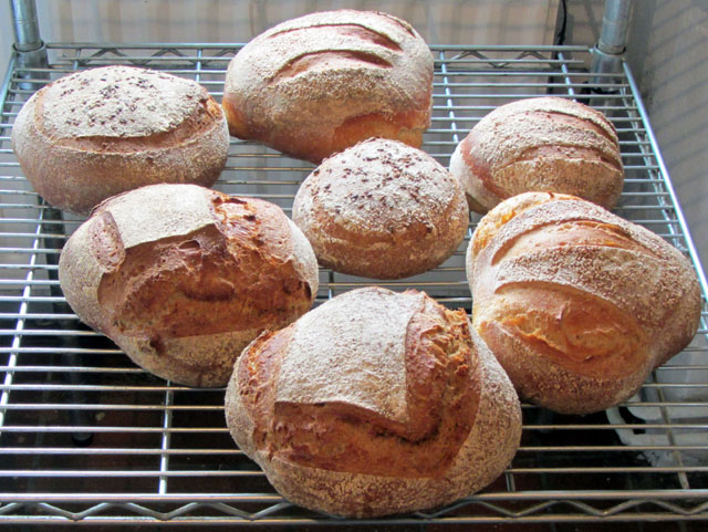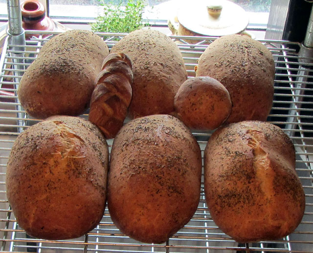 The dough seemed to appreciate the smoothness of the operation. Every time I turned my back it rose a little. Within three hours I was urging the breads in the oven to get a move on because the ryes looked in danger of collapse.