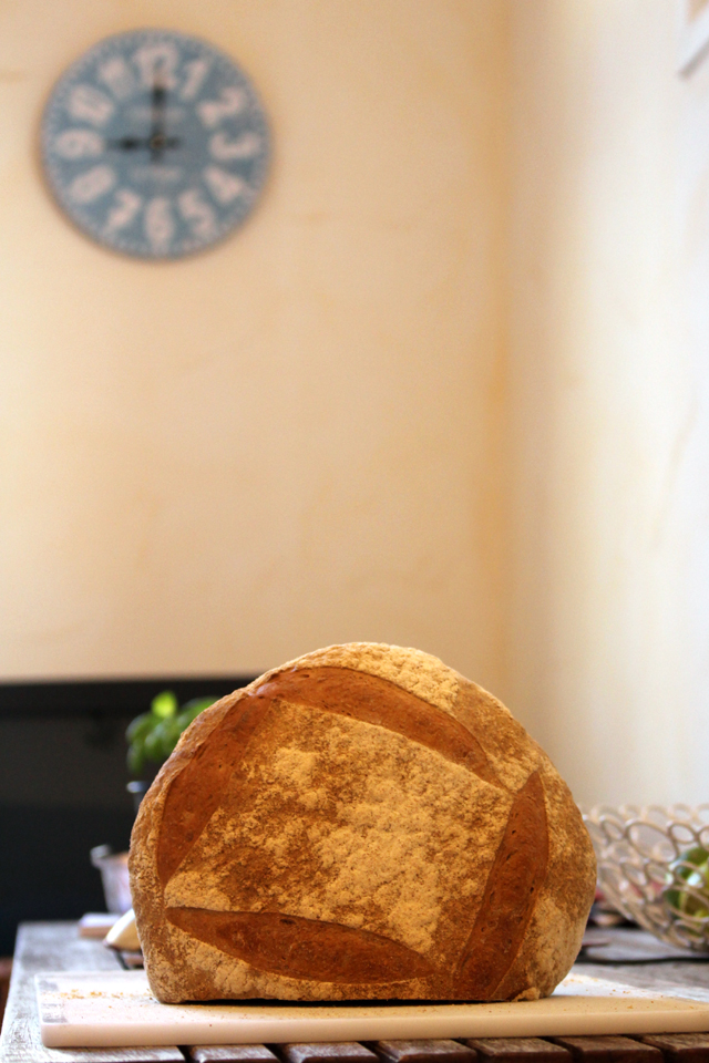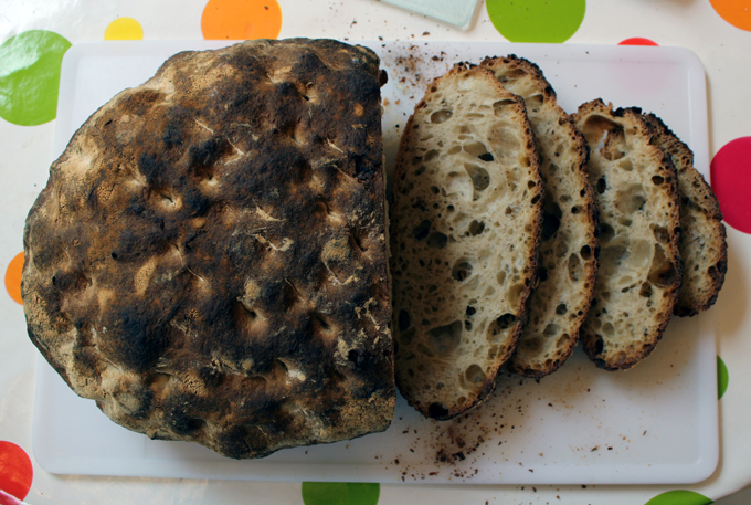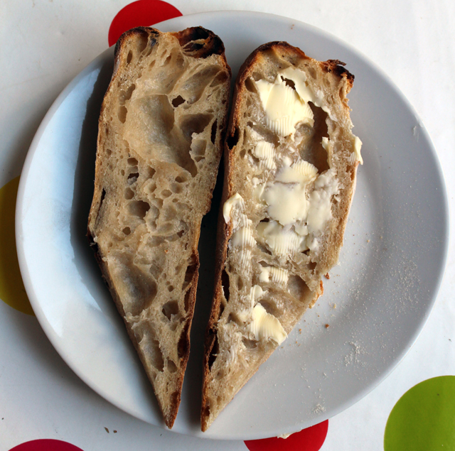 I bet you think that’s a Pane Pugliese. Well it’s not. It’s a Pain de Campagne masquerading as a Pugliese. And for all you bakers who think you need a high hydration for an open crumb – this is slightly under 60%.