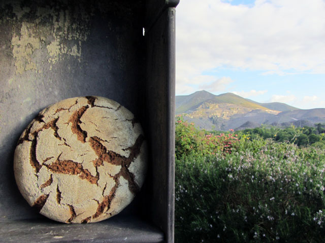 Simple Danish Rye on the porch shelf of our quarryman’s cottage. In the background the slate quarry on which Bethesda is founded and the Glyder mountains of Snowdonia in North Wales.