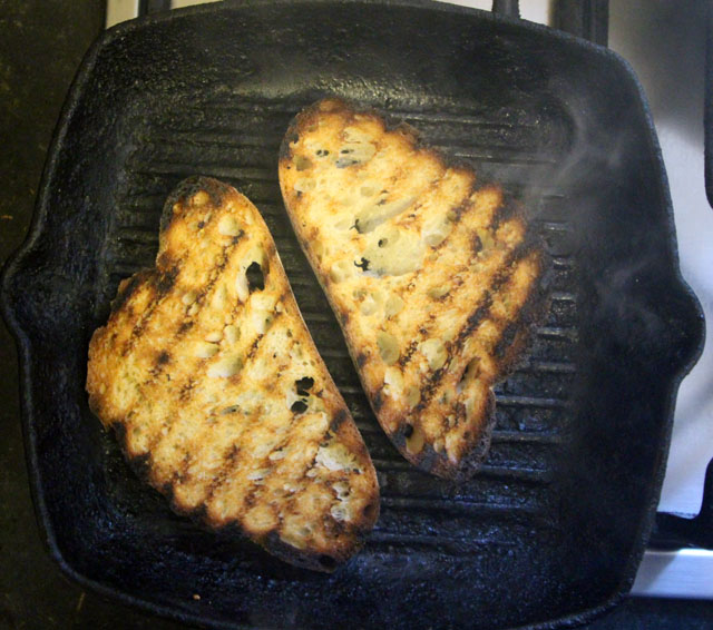 Roast cherry tomatoes in olive oil with garlic and chile flakes. Grill Pain de Campagne, rub both sides with a peeled clove of garlic and sprinkle with olive oil. Layer the tomatoes on the toast with goats cheese and rocket pouring any pan juices over the top.