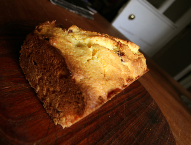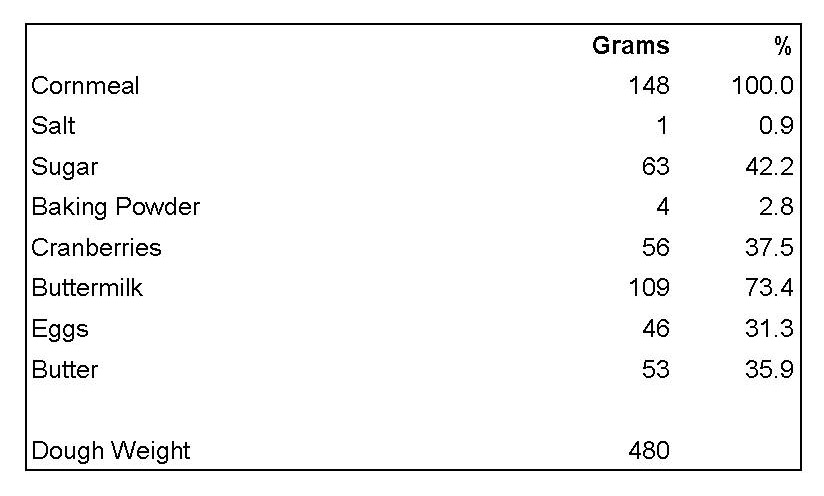This cornbread formula was given to us by Erin, one of our faithful American customers (until she recrossed the Atlantic to take up a university post in Canada) and the recipe is an old family one. It’s the only sweet, fruited corn bread recipe I know.
