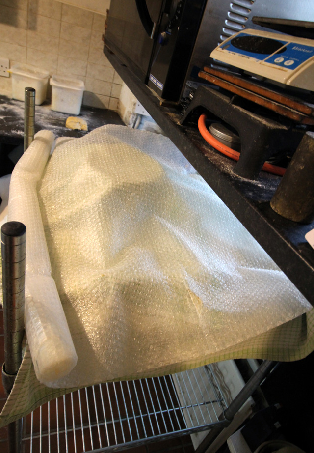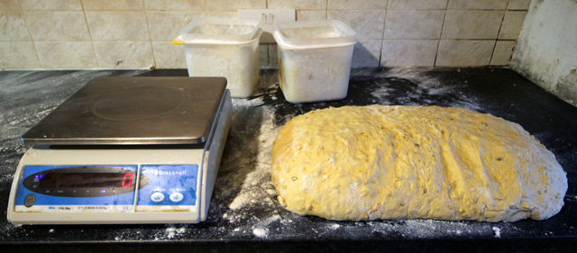 4.00 p.m. the doughs – Campagne, Classic, Wholemeal and Butternut Squash are hand-mixed and stashed, in their boxes in the fridge for a slow overnight fermentation.