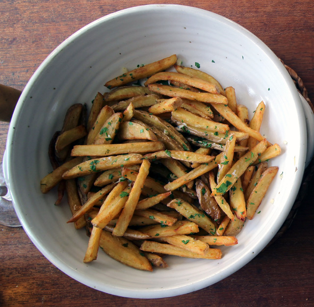Is there a difference between frites and chips? I dunno but I reckon frites should be pretty skinny, triple fried (goes without saying), and they MUST be tossed in parsley, garlic and sea salt before serving.