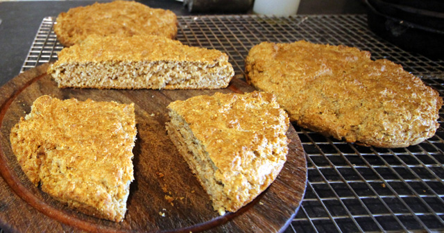 The thickish, lumpy white stuff in the jars doesn’t seem to have a name – it’s what you get when your cheese doesn’t work out and the idea is to try it out in bread making. So, start simple with soda bread where I would normally use buttermilk or, in its absence, yoghurt. This is a Welsh soda bread, Bara Surgeirch.