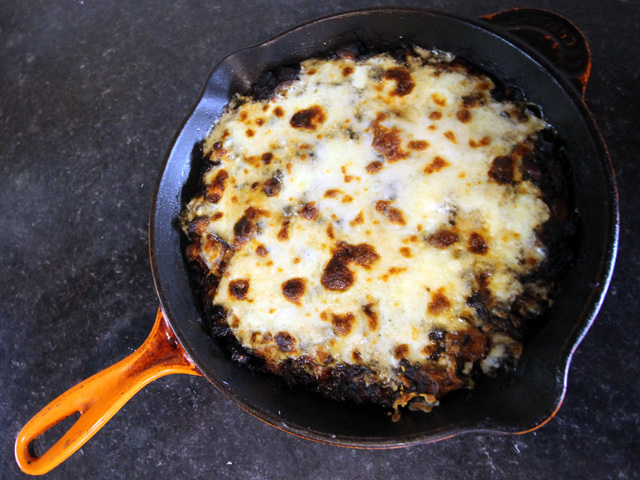 This went back under the grill topped with some pretty classy scraps – the last of Carrie Rimes’ ewes milk cream cheese and leftover grated mozzarella.
