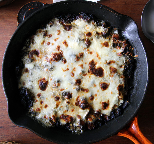 This went back under the grill topped with some pretty classy scraps – the last of Carrie Rimes’ ewes milk cream cheese and leftover grated mozzarella.