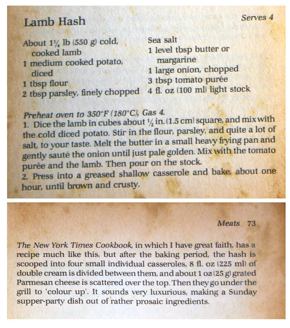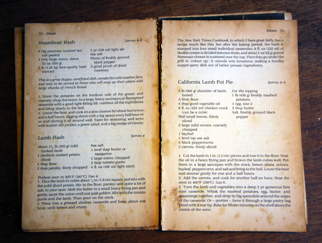 This is a great little book bought remaindered for pennies about 25 years ago in Galloway & Hodgeson – long defuct university bookshop (is Bangor the only university town in the world without a bookshop?). You can see from the state of it, it has served us well.