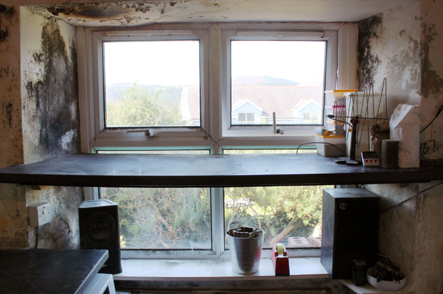 Look at all that window space! Nothing left but a couple of unmatched Tannoy speakers …