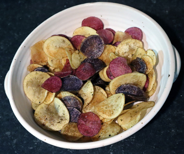 Too many spuds – pas de problème – crisps! Rick & Maggie’s rainbow potatoes providing the splash of colour.