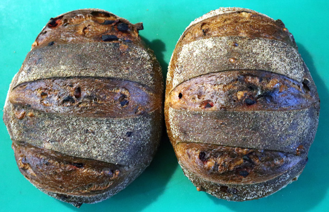 Then the egg-washed Santes Dwynwen. 250C Top, 220C bottom, steam 10 minutes. The reduced to 220C Top and 190C Bottom. 40 minutes total. Second coat of egg-wash half way through.