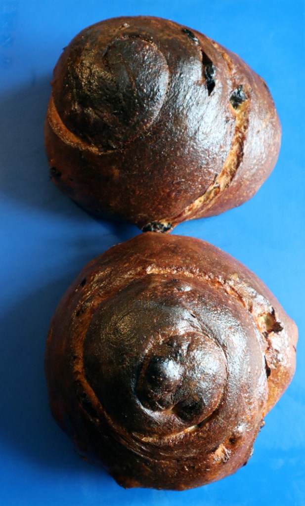 My Pico settings: 2 x 940g doughs; 250C top, 220C bottom; steam 15 minutes, vent and reduce to 220C top, 200C bottom; 40 minutes total. Baked on tray. Egg washed before baking and after 15 minutes and 30 minutes.