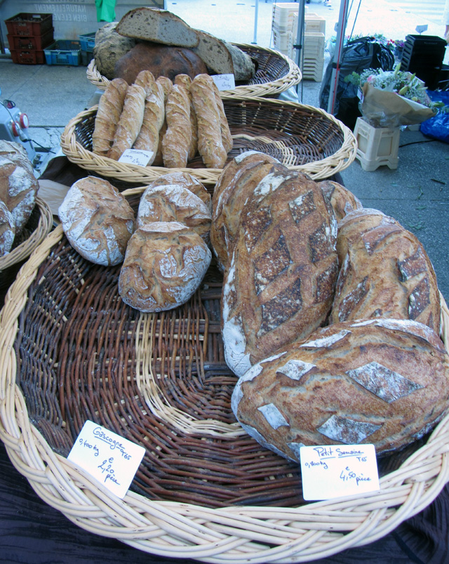 So, two weeks on, a weekend dawned when we were both comparatively well. Off we went to the adjoining town of La Teste du Buche which has an amazing Saturday market and stocked on proper bread from Le Fournil des Boiens – my main influence, baker Marc Brion.