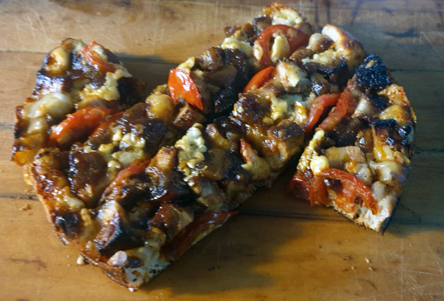 But today, with the remains of the pork and the barbeque sauce, I knocked up a pizza the like of which you won’t find anywhere outside of Ffrydlas Road Bethesda.