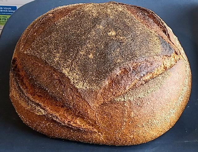 This is a mongrel bread because of circumstances. I’ve been very sloppy of late milling and sieving flour but I thought my tub of wholemeal pretty well stocked.