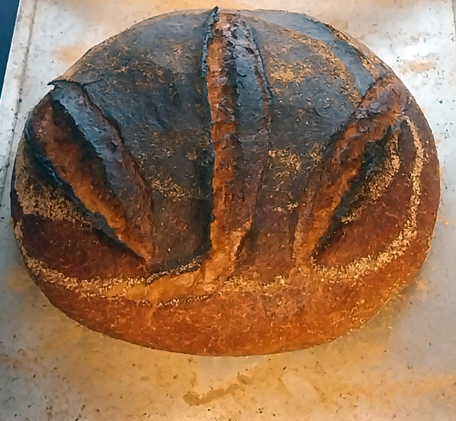 Baked in the Pico 250C top, 220C bottom, 15 mins steam, 65 mins total.