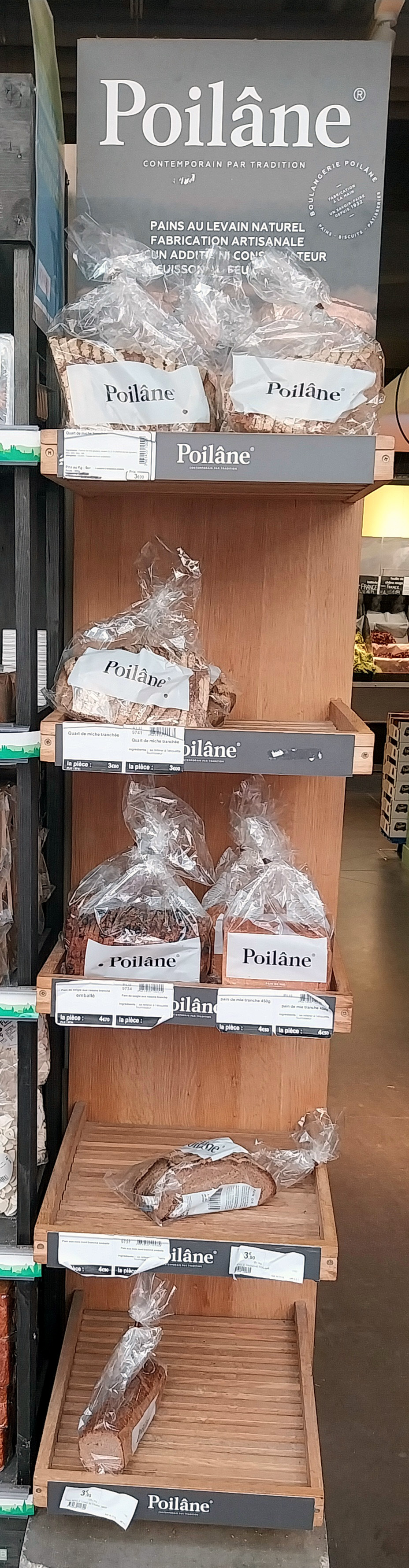 For several years now every Monoprix store in France has had a stand like the one pictured displaying sliced and packaged Poilâne bread.