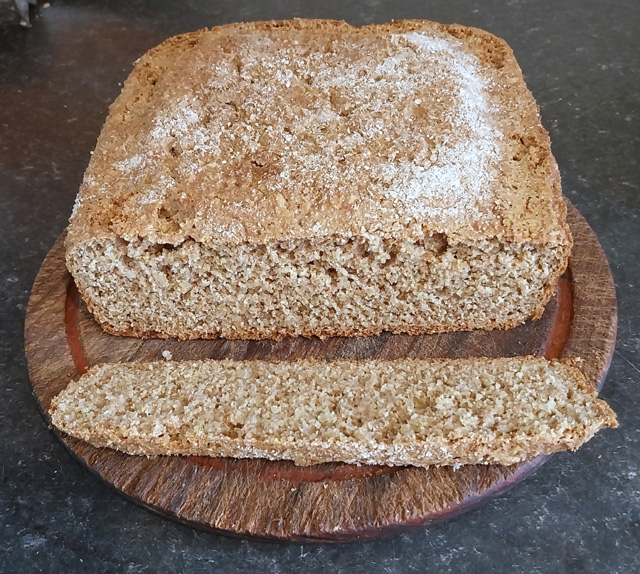 Now that I’m milling my own flour I can produce coarse wholemeal and I’ve plenty of bran, perfect for soda bread. So the bran substitutes for the wheatgerm. Being in possession of a jar of Cosyn Cymru finest ewes’ yoghurt I used that instead of the buttermilk, and, because it is set, used it half-and-half with the milk – 250g each (even then I had to add a good extra dash of milk to the mix).