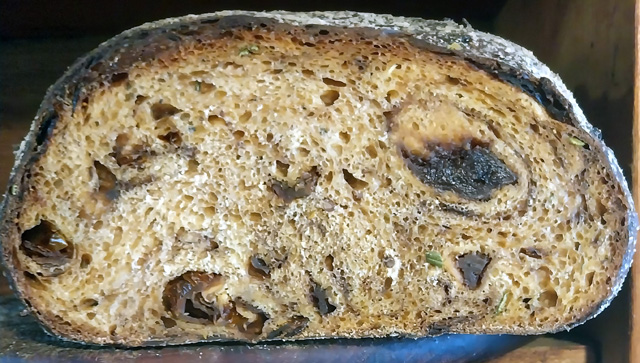 Pain Niçoise: figs, sundried tomatoes, olives, garlic, herbs. A fine bread to accompany cheese.