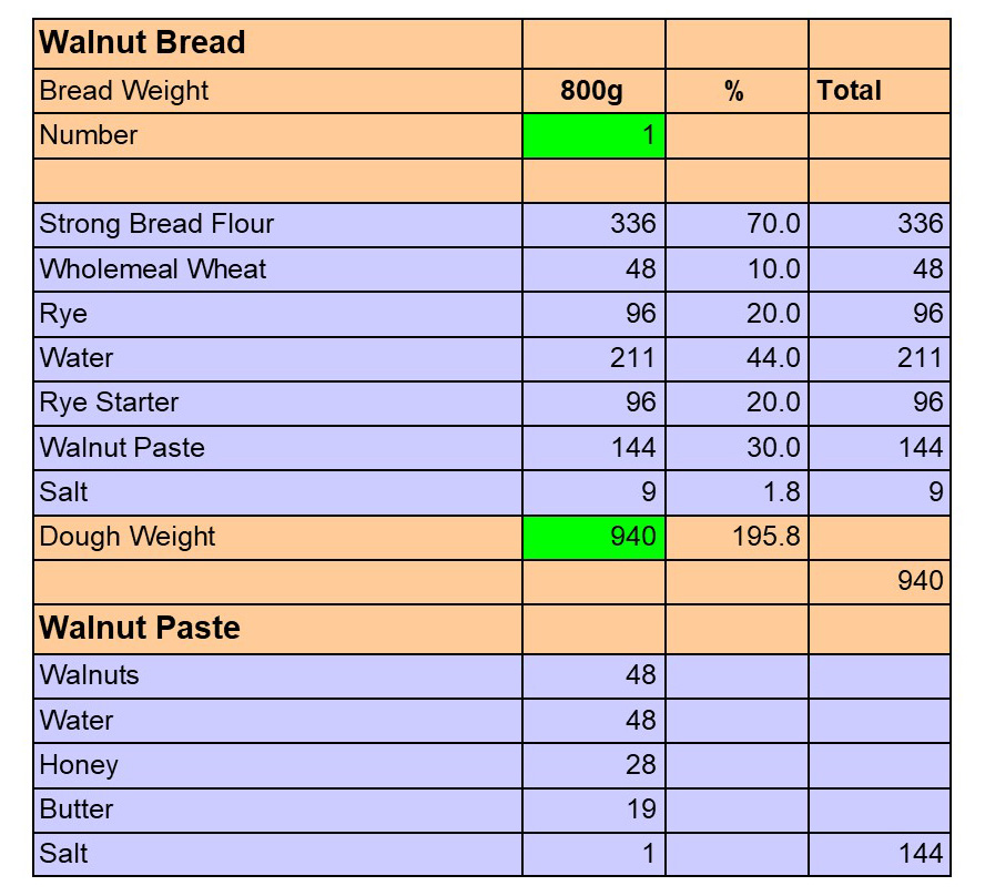 This brought to mind Dan Lepard’s Walnut Bread from his “The Handmade Loaf”. (Amazing to think it is 20 years since the book was published.)
