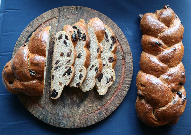 Yet another variation on Raisin Challah mainly from the Babka Zana wholemeal recipe recalculated to include the raisins. Here’s the formula: