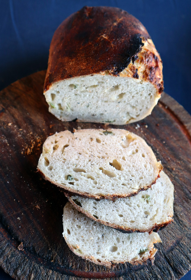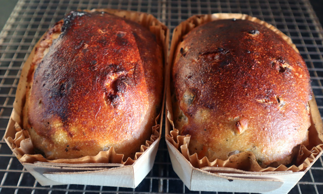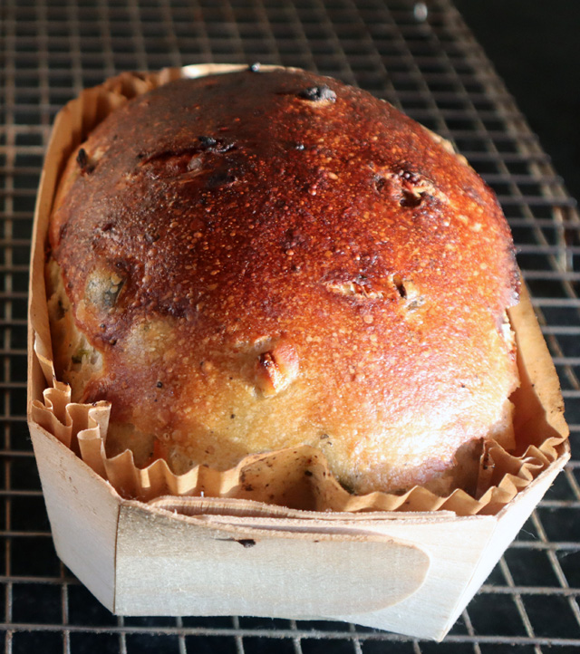Painted a couple of coats of the goo from the pickle jar on the breads during baking which gave the breads a slightly caramelly crust. The mystery is how the chile heat increased as the week went on …