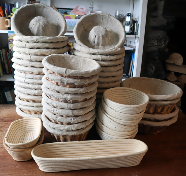 The time has come for me to get rid of most of my proving baskets. They’ve been sitting around since I retired a few years ago with only a couple of them in regular use. I’m particularly fond of them, especially the Vanerie de Villaines baskets which are serious pieces of work and come at a serious price.