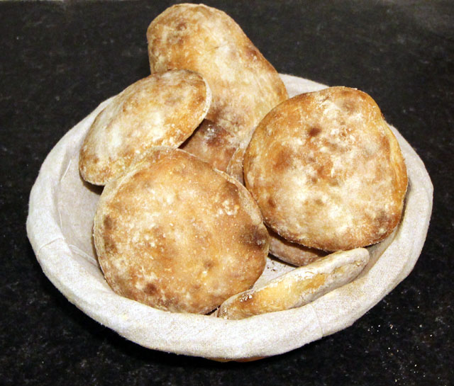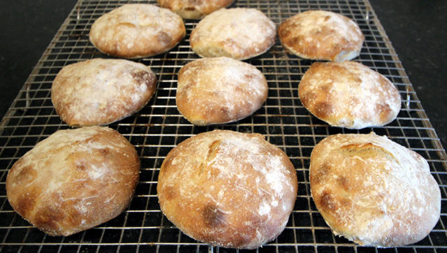 On this occasion I had scaled down the dough to 1200g to make two flatbreads and ten buns @ 100g each.