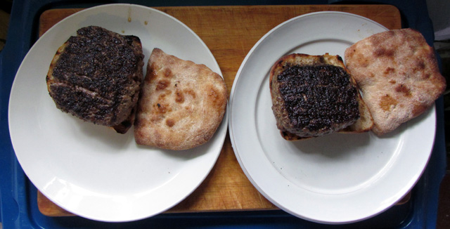 Photo below to to compare the sizes of the buns and flat breads – both 100g.