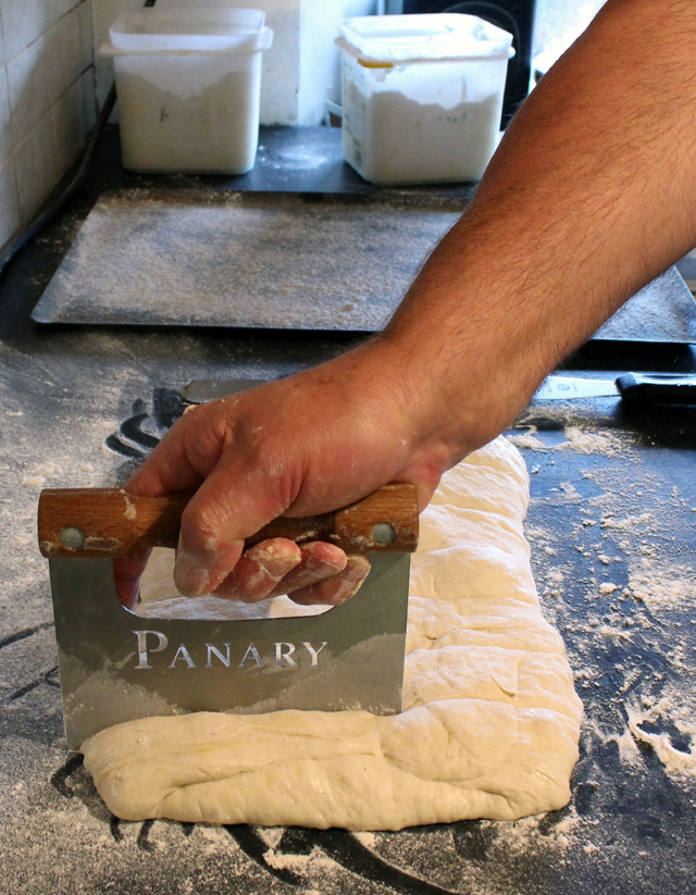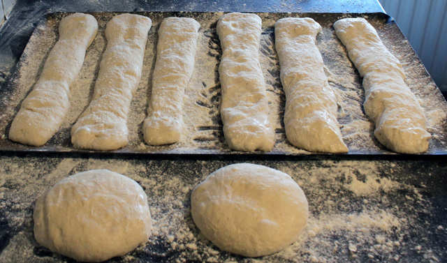 Divide the dough weight by 200 and mark out that number of strips. Cut out the strips and lay them on a rye floured baking sheet giving them a little stretch as you do so.