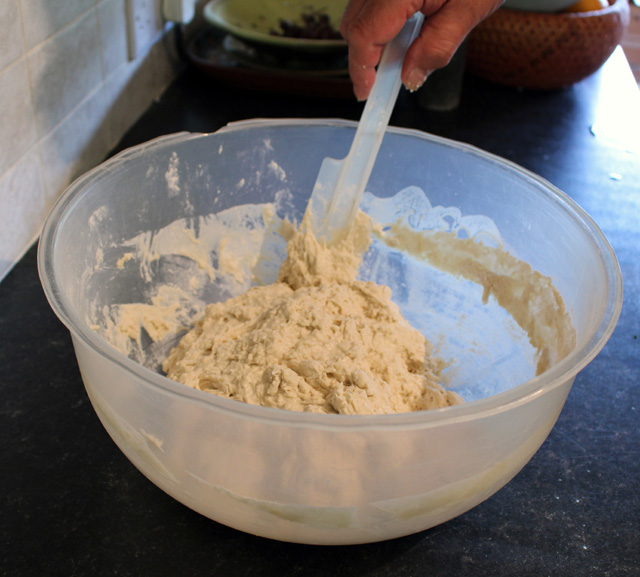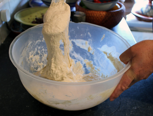 The mixing and kneading follows my usual three short knead method but is all done in the bowl using a spatula.