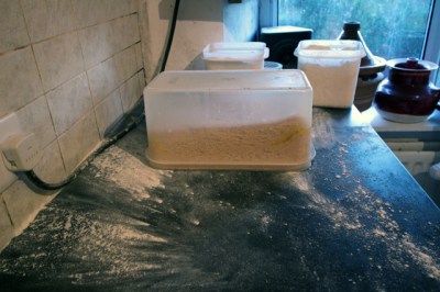 Finally everything gets washed up and cleaned down again and I force myself to refresh my starter even though, by now, this seems a major task.