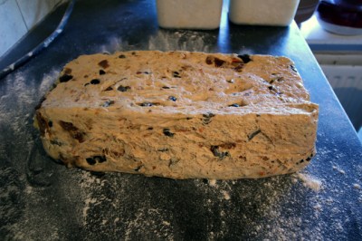 Then came the Fougasse. Nice soft oily dough full of olives, sundried tomatoes, onions, garlic.