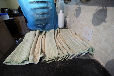 Soon enough they are rolled out and placed in a couche of floured tea towels.