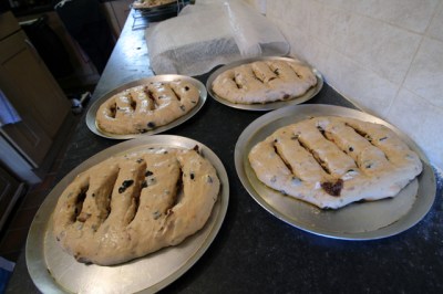 10.30 a.m. The Campagnes are ready to go in the oven. Six in the big oven: